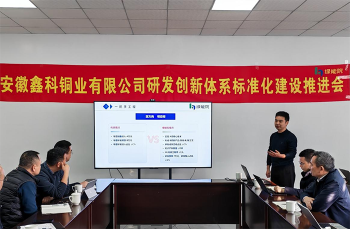 2026年1月24日,安徽鑫科铜业有限公司(简称“鑫科铜业”)邀请安徽绿能技术研究院有限公司(简称“绿能院”)在芜湖召开了研发创新体系标准化建设推进会。鑫科铜业研发体系是一个贯穿顶层设计、产品创新、生产运营和产业链协同的系统工程,公司确立了清晰的行动框架和推进计划,明确了2026年研发投入目标、研发项目负责人及未来科技成果。